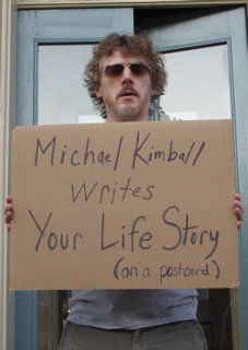Michael Kimball has authored four books, including Dear Everybody and Us, which have been translated into a dozen languages, including Italian, Spanish, German, Chinese, Korean and Greek. His new novel, Big Ray, will be out this September, and the postcard stories will be available in book form sometime in the spring of 2013. Other work has appeared in The Guardian, Bomb and New York Tyrant and been broadcast on All Things Considered. He is also responsible for several documentaries, the 510 Reading Series and the conceptual pseudonym Andy Devine.