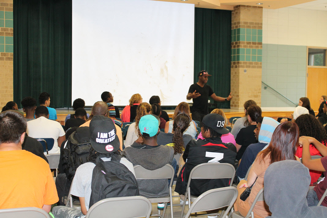 The most amazing thing was the silence during his question and answer period, Reis said. After someone asked a question, Asante paused to think for a moment, and “you could have heard a pin drop — at our school there’s a lot of bad behavior — that doesn’t happen.”