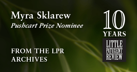Myra Sklarew was profiled by Lalita Noronha in the Winter 2014 Science Issue. Then-editor Laura Shovan reads this poem at the Winter 2014 issue launch.