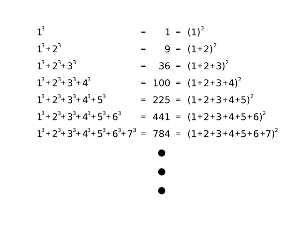 When I was twelve and in 8th grade I was walking somewhere and started adding up cubes of integers in my head. One cubed plus two cubed plus three cubed plus four cubed happens to be 100. I noticed that the sum of the first N cubes was always a square, and in fact, was the square of the Nth triangular number.
