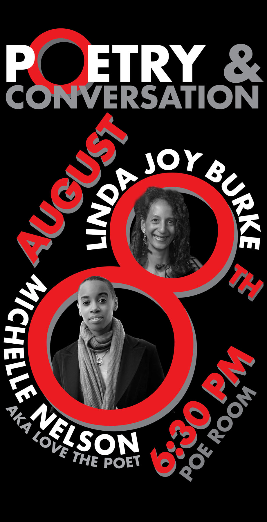 Join poets Michelle Antoinette Nelson, better known as LOVE the poet, and Little Patuxent Review Contributing Editor Linda Joy Burke as they perform their own work and discuss the differences between poems on the page and poems performed onstage. August 8, 2012, 6:30 pm, Enoch Pratt Free Library Central Branch, 400 Cathedral Street, Baltimore, MD.